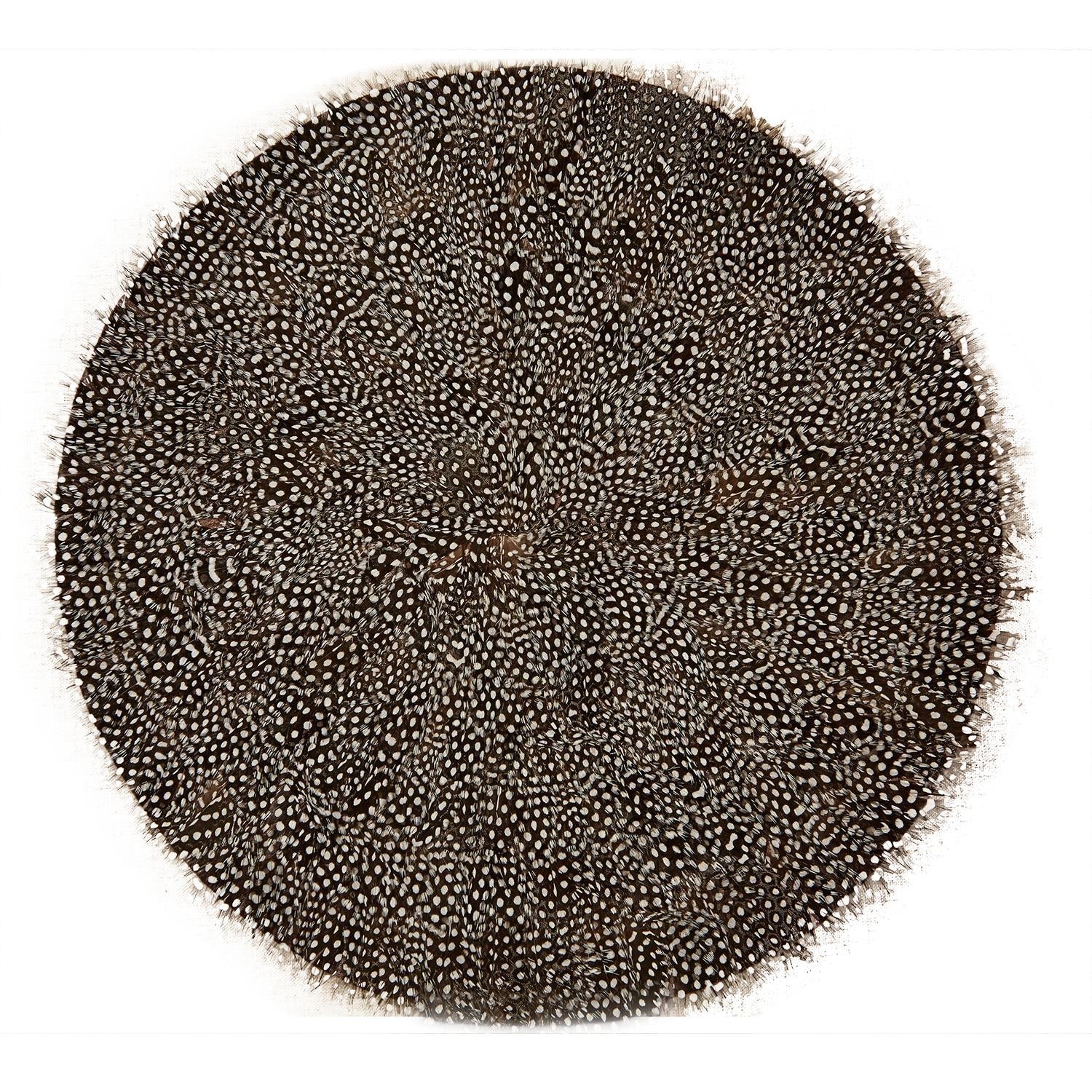 Feel the warm fall vibes each time you sit down for dinner with the Two's Company Guinea Feather Placemat. These placements are handmade with guinea fowl feathers and will bring an added touch of luxury to any table setting.