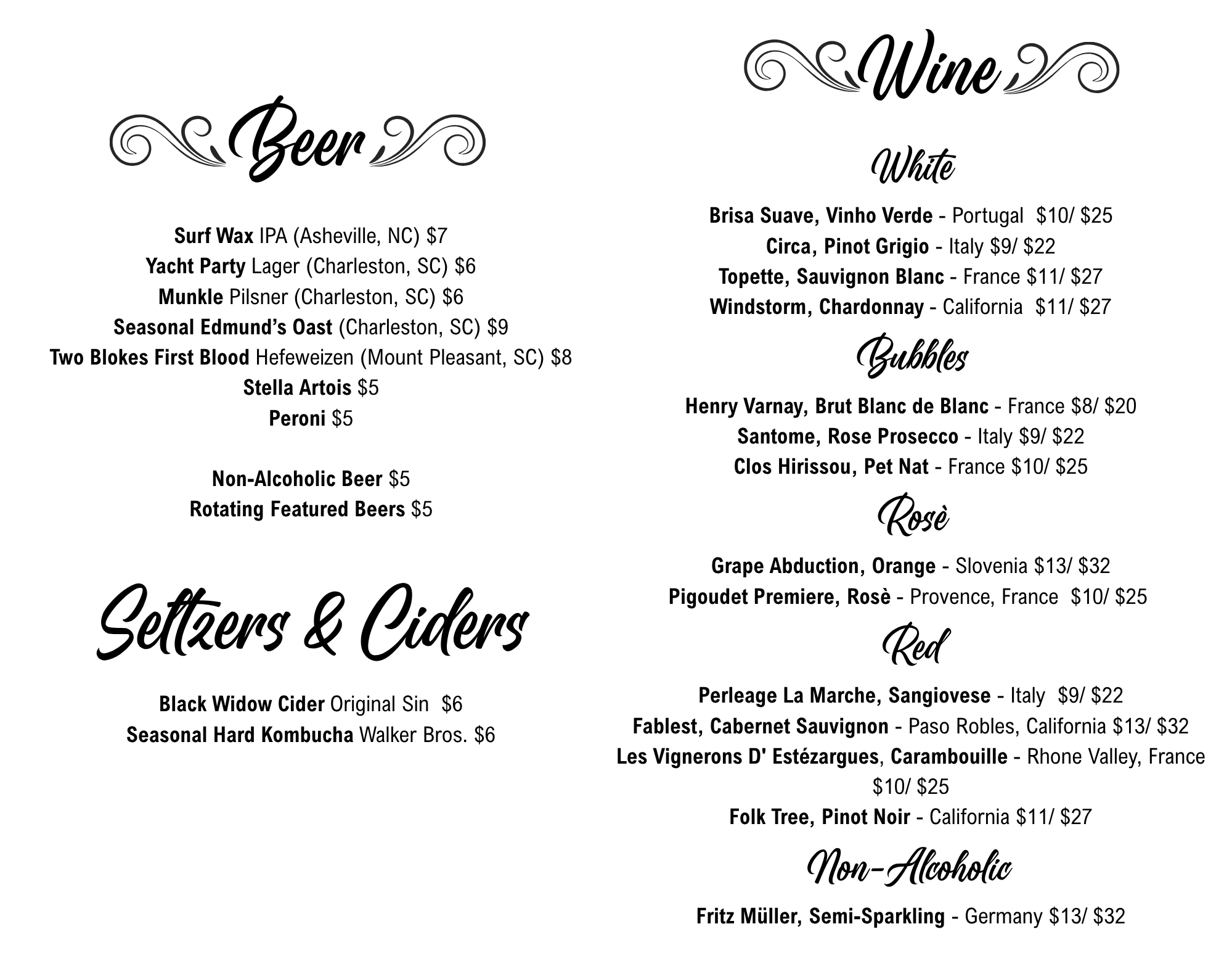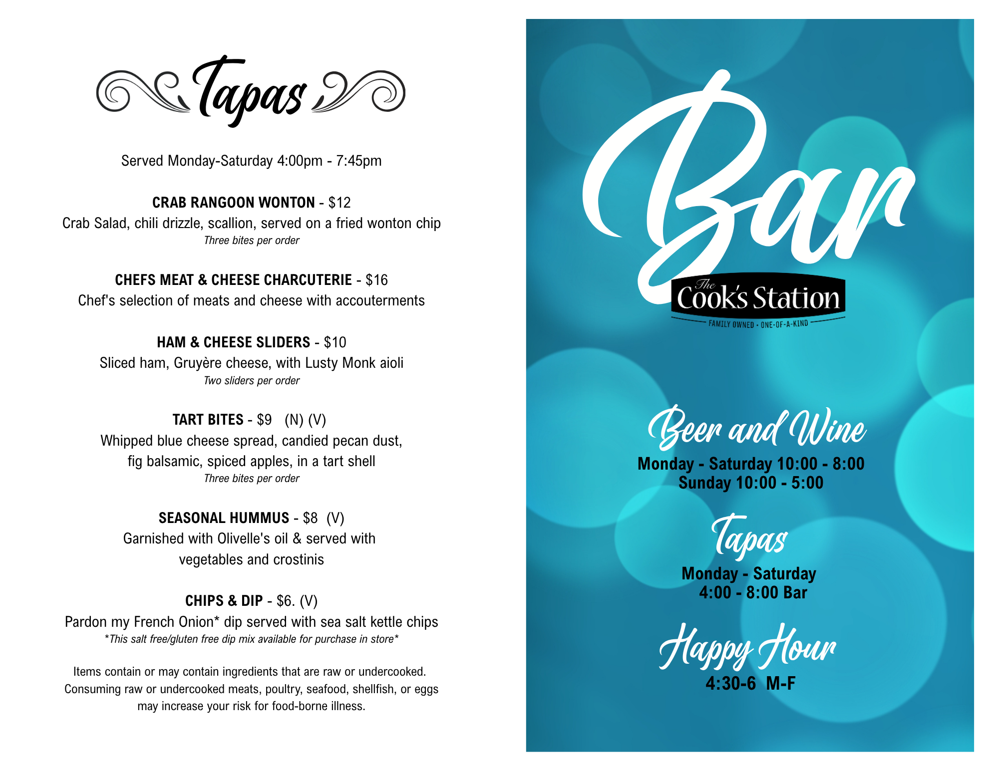 Bar & Tapas Menus