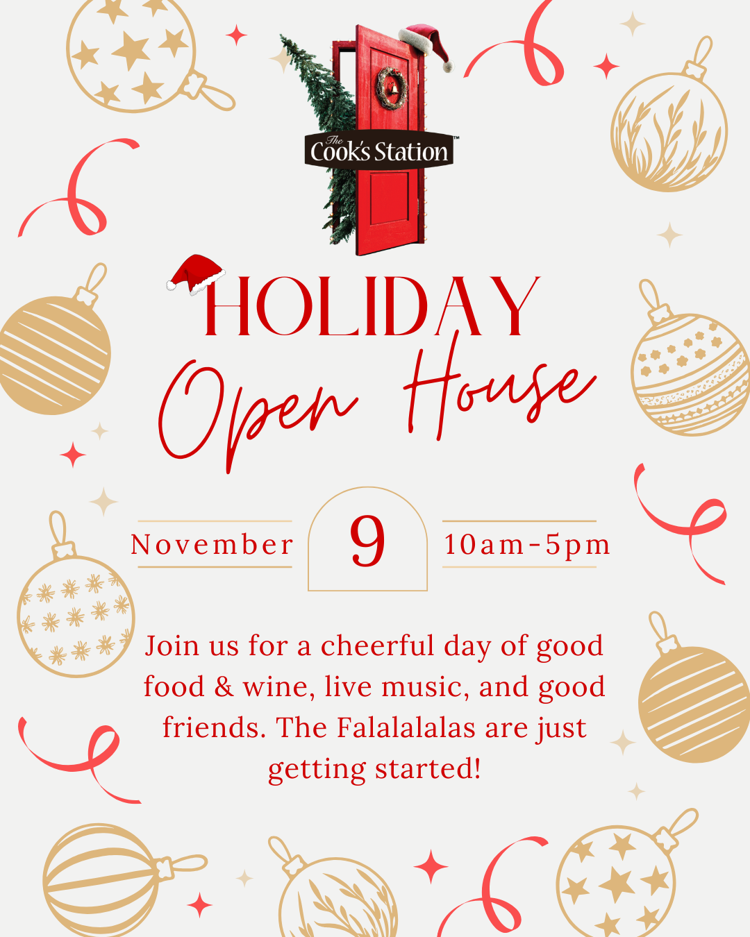 Join us for The Cook’s Station Holiday Open House on Sunday, November 9th from 10AM–5PM! Get into the holiday spirit as you sip, shop, and savor the season with festive food samples, a hot chocolate bar, and special holiday drink features from our bar.