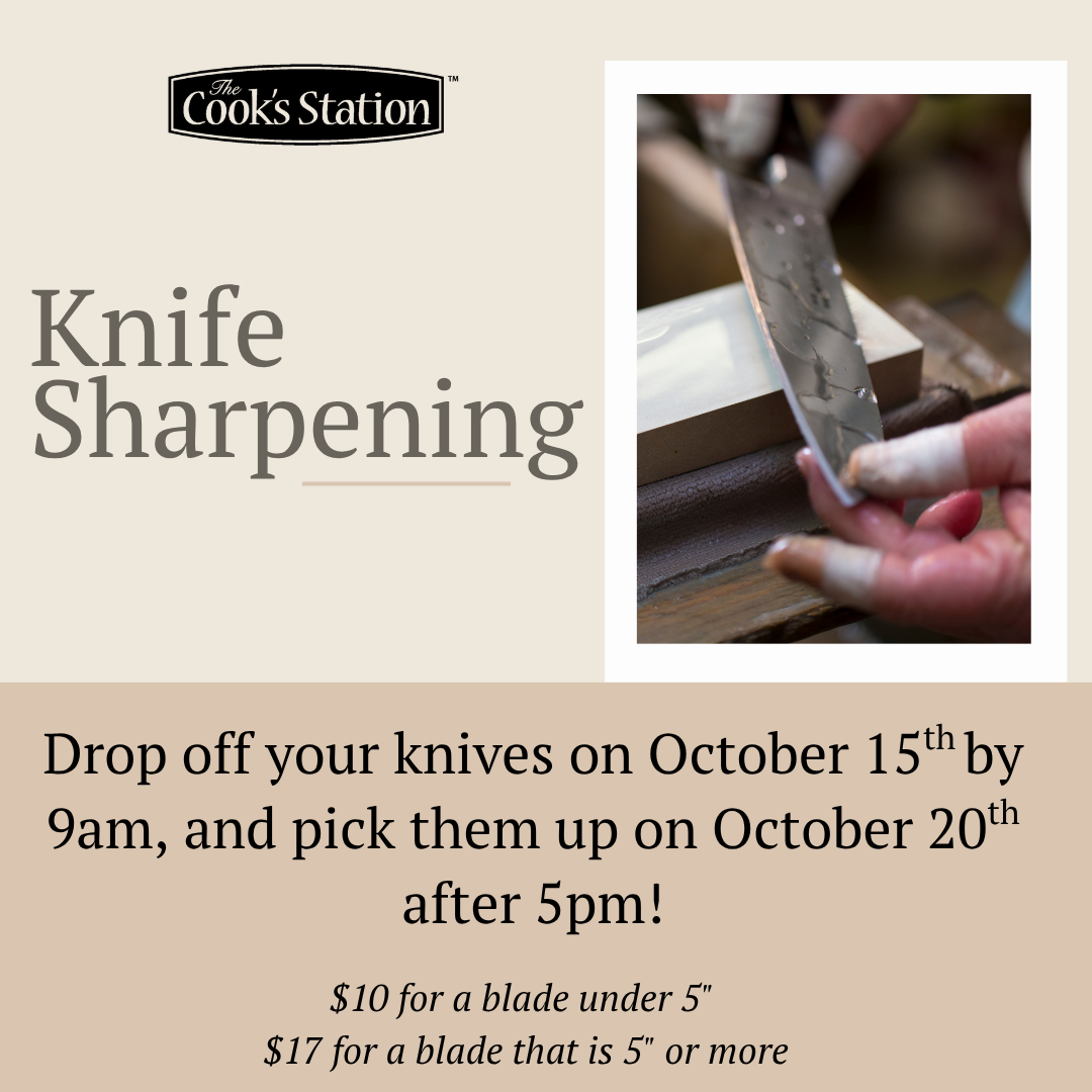 Do you need your knives sharpened? Have Chef Craig Kuhns hand-sharpen your knives for you!